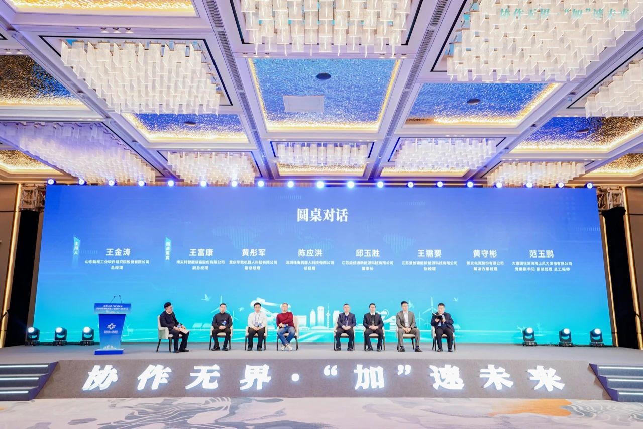 埃夫特智能装备股份有限公司副总经理王富康、重庆华数机器人科技有限公司副总经理黄彤军、深圳怪虫机器人科技有限公司总经理陈应洪、江苏益佳通新能源科技有限公司董事长邱玉胜、江苏景创锂能新能源科技有限公司总经理王需要、阳光电源股份有限公司解决方案经理黄守彬、大唐国信滨海海上风力发电有限公司党委副书记副总经理总工程师范玉鹏共同参与,并就新能源行业未来走向,机器人解决方案现状、合作现状、升级创新方向、合作路径等议题同台共话。本次对话由山东新松工业软件乐玩lewin股份有限公司总经理王金涛主持。