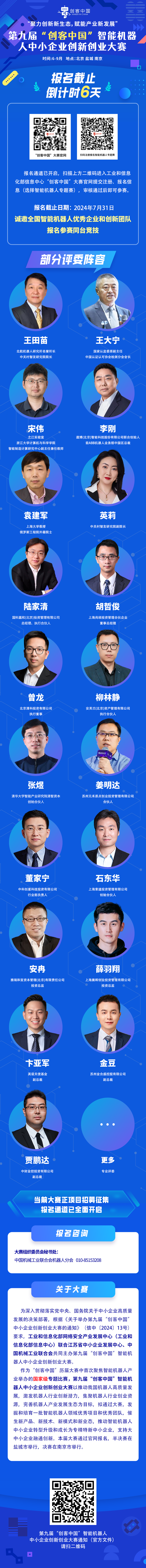 报名倒计时6天!第九届“创客中国”智能机器人中小企业创新创业大赛评委阵容首发!
