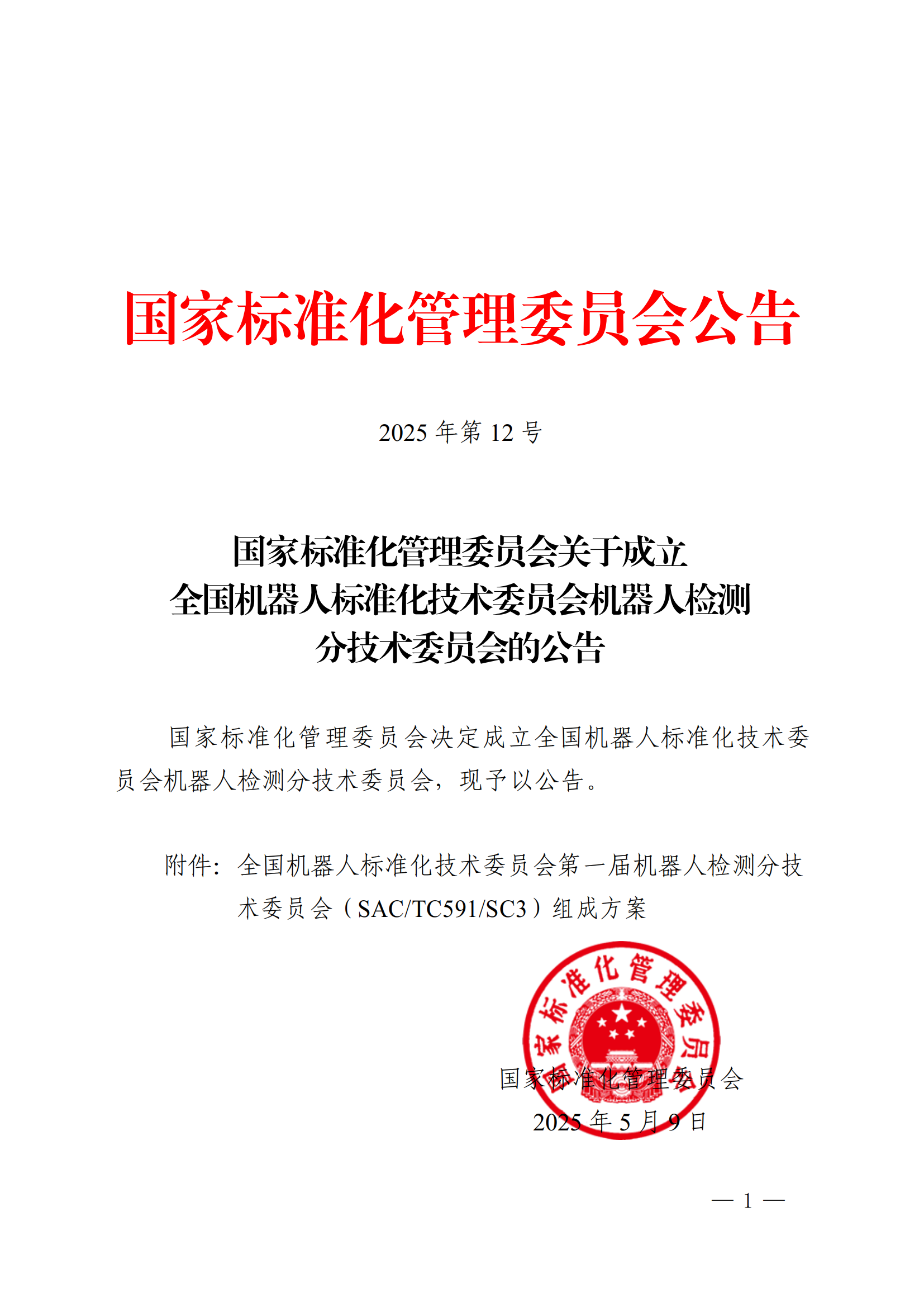 5月9日,国家标准化管理委员会发布《关于成立全国机器人标准化技术委员会机器人检测分技术委员会的公告》,决定成立全国机器人标准化技术委员会机器人检测分技术委员会(以下简称:分技术委员会),主要负责全国机器人检测与评估领域标准化工作,秘书处由上海电器科学乐玩lewin承担,我院专家邢琳任委员兼秘书长。