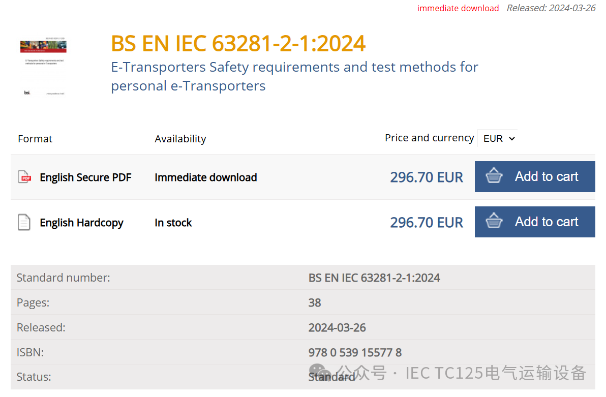 在全球化浪潮下,标准的统一与协调对于行业的可持续发展具有深远意义。IEC/TC125 四项标准的发布,为电气运输设备这一新兴品类提供了清晰的术语定义和明确的技术规范、测试方法,保障了产品的安全和质量。后续,在 IEC/TC125 标准的引领下,电气运输设备将打破地域壁垒,加速全球市场的融合与流通,促进产业链上下游的高效协同,激发企业的创新活力,推动技术不断迭代升级 ,以更卓越的性能、更环保的理念、更智能的特性,开启全球绿色交通、智慧物流的行业发展崭新篇章。