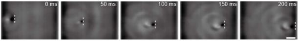 从下图可以看出,磁驱软体鱼可以在超声成像下游过血管。