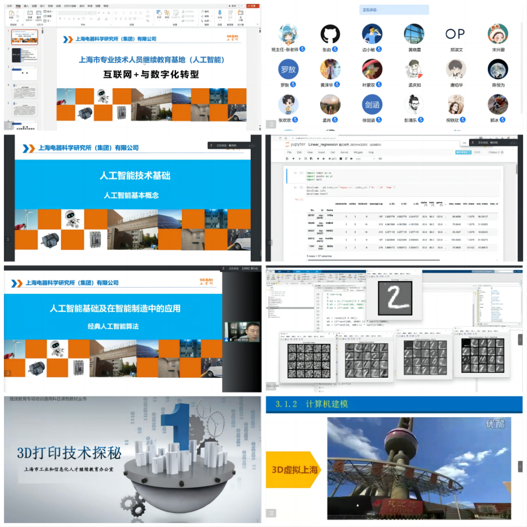 2023年5月,上海电器科学研究所(集团)有限公司举办的《互联网+与数字化转型》、《人工智能技术基础》、《人工智能基础及在智能制造中的应用》与《3D打印技术概论》专业课顺利完成开班。
